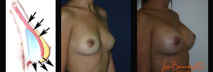 La vía que mas se utiliza en nuestro medio teniendo en cuenta nuestras características étnicas es la peri-areolar. Pues por la pigmentación queda mas escondida. Si la areola es muy pequeña se va a maltratar la piel y se va a demorar en cicatrizar pero se puede casi siempre. La ventaja de la vía peri areolar es que se puede colocar el implante en buena posición y los procedimientos secundarios se hacen por esa vía. Otro problema es que tiene una incidencia un poco mayor de cambios de la sensibilidad del complejo areola pezón.