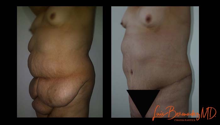 Lo ideal es adicionar una lipoescultura de la espalda, de los flancos y de la region glútea. Para disminuir las complicaciones no recomiendo la liposuccion de la cara anterior del abdomen. Es preferible un retoque de esa zona con anestesia local a una necrosis de piel con una cicatrización demorada.